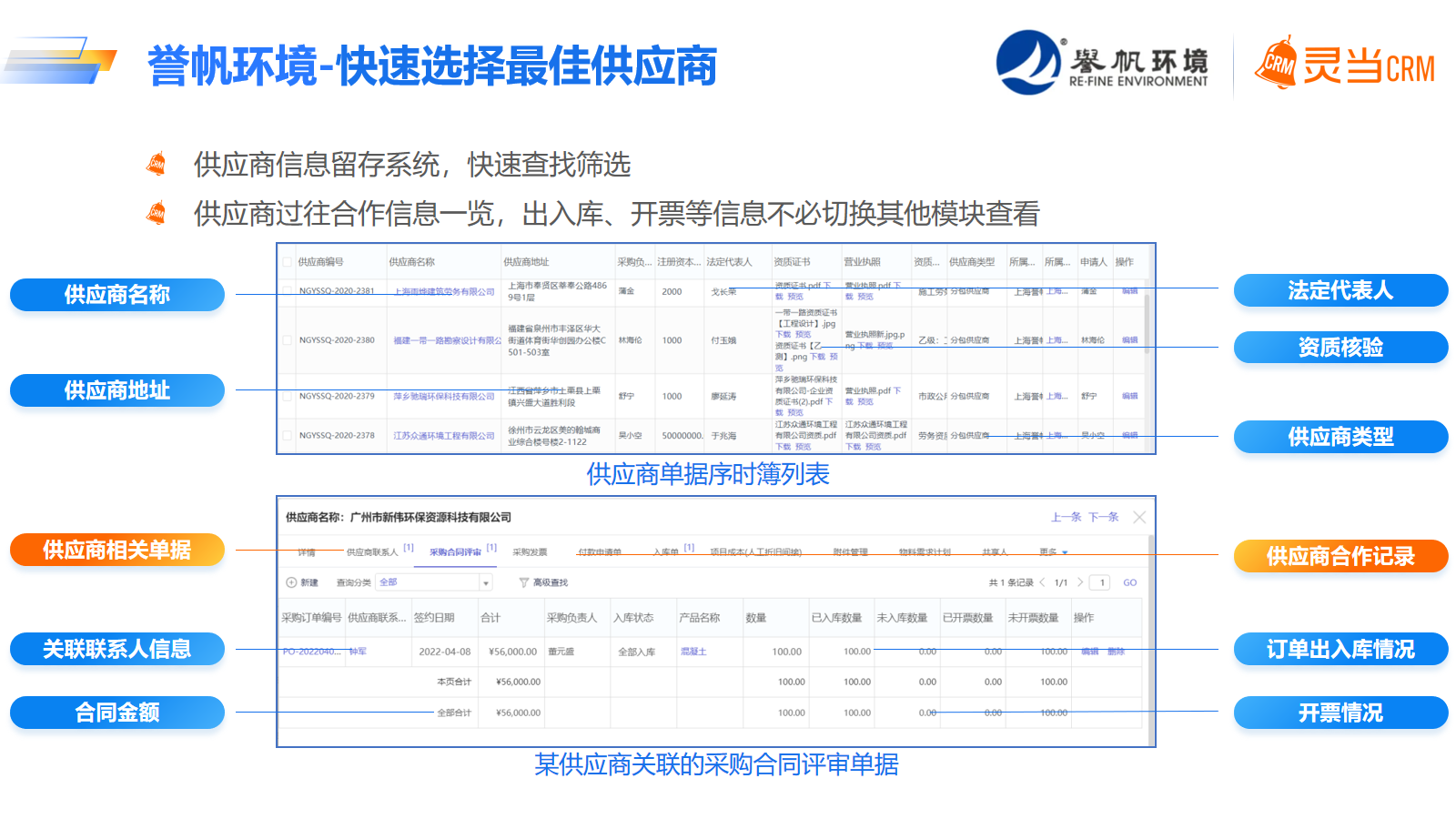 3. 构建完整的供应商管理档案,历史信息、出入库、开票、合同全方位跟踪查询,掌握实时采购状态。