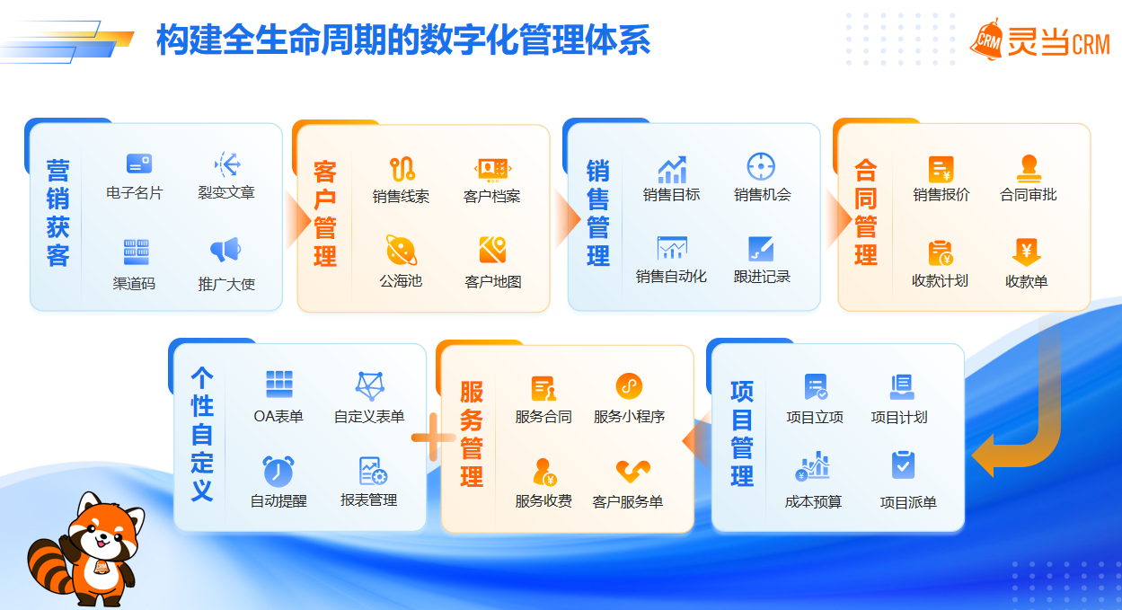 灵当CRM系统为企业提供客户管理数字化、销售管理自动化、服务管理智能化、项目管理一体化的个性化CRM解决方案。