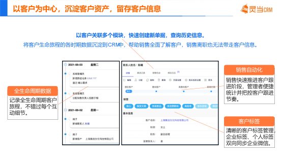 此外,灵当CRM还拥有六大核心优势:个性自定义、移动化办公、高性价比、更多行业方案、集成ERP接口和灵活的部署方式(支持本地部署和云端租赁)。灵当CRM能够以数字化手段,帮助企业清楚的梳理各项事务,构建全生命周期的数字化管理体系,为企业的长久稳定发展保驾护航,助力企业管理走上降本增效的快车道。