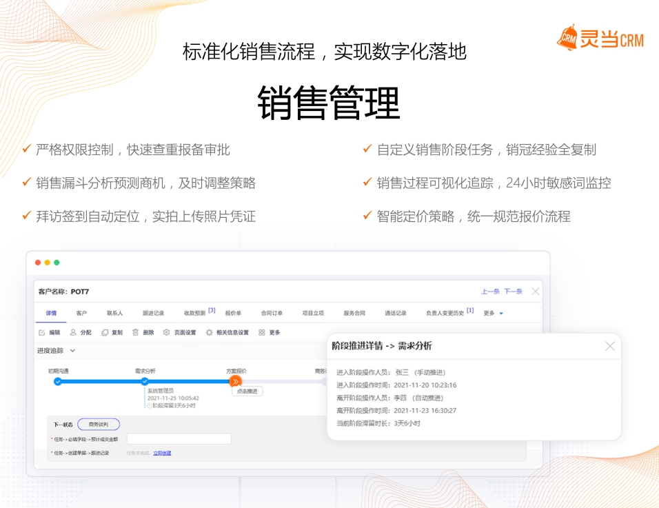 以灵当CRM为例,其销售管理板块真正做到了为领导者考虑的同时也为销售人员分忧。
