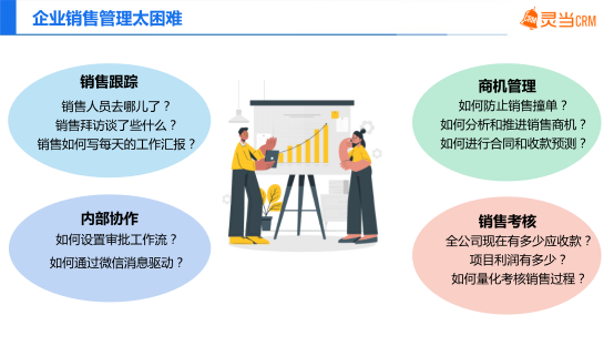目前市场上CRM品牌众多,我们以灵当CRM为例,其可以帮助服务行业企业解决以下问题: