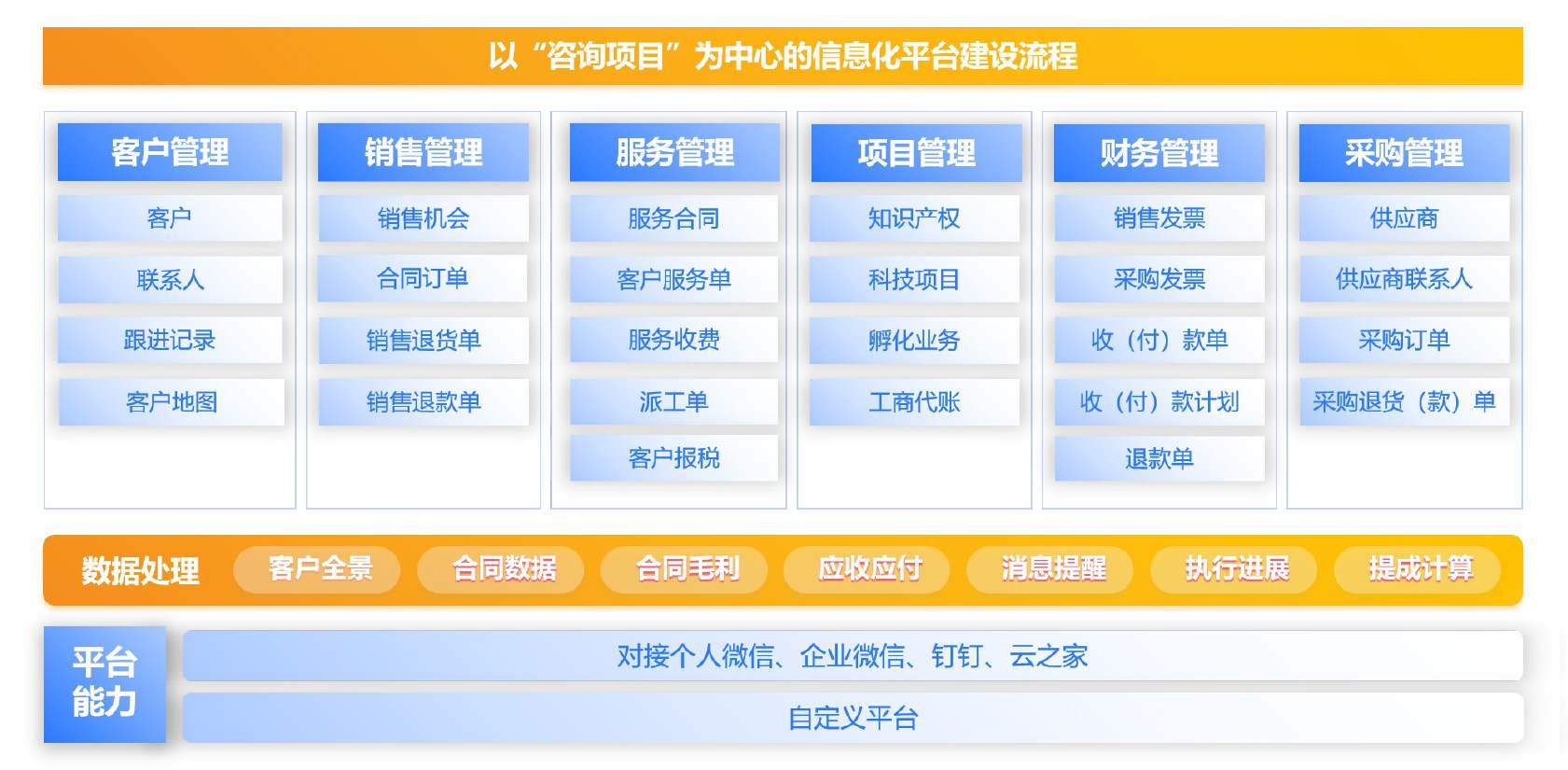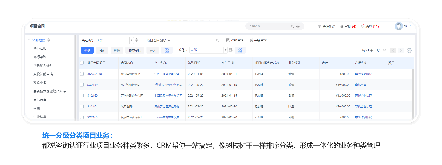 代账服务、公司注册、商标注册、发票托管等多种业务类型的合同内容不同,后续跟进的工作也不同,难以系统化管控
